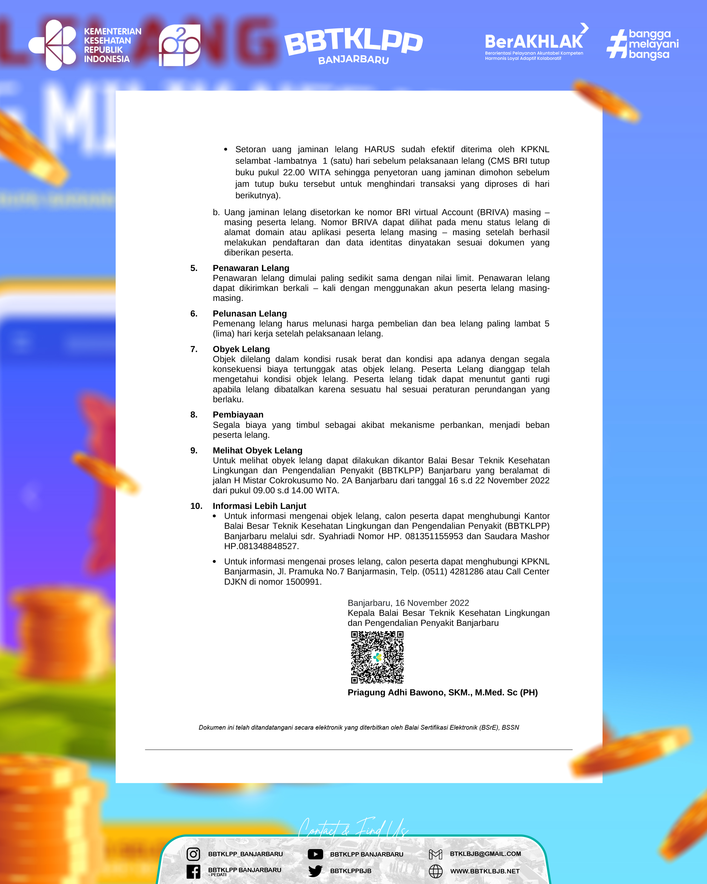 Telp. 0511-4780343 atau E-mail : bbtklbjb@gmail.com