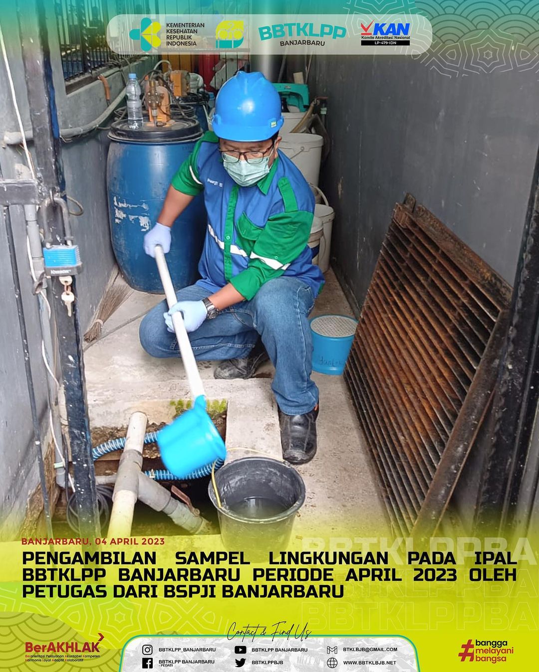 Pengambilan Sampel Lingkungan Pada IPAL BBTKLPP BANJARBARU Periode April 2023 Oleh Petugas BSPJI Banjarbaru 2023-04-05