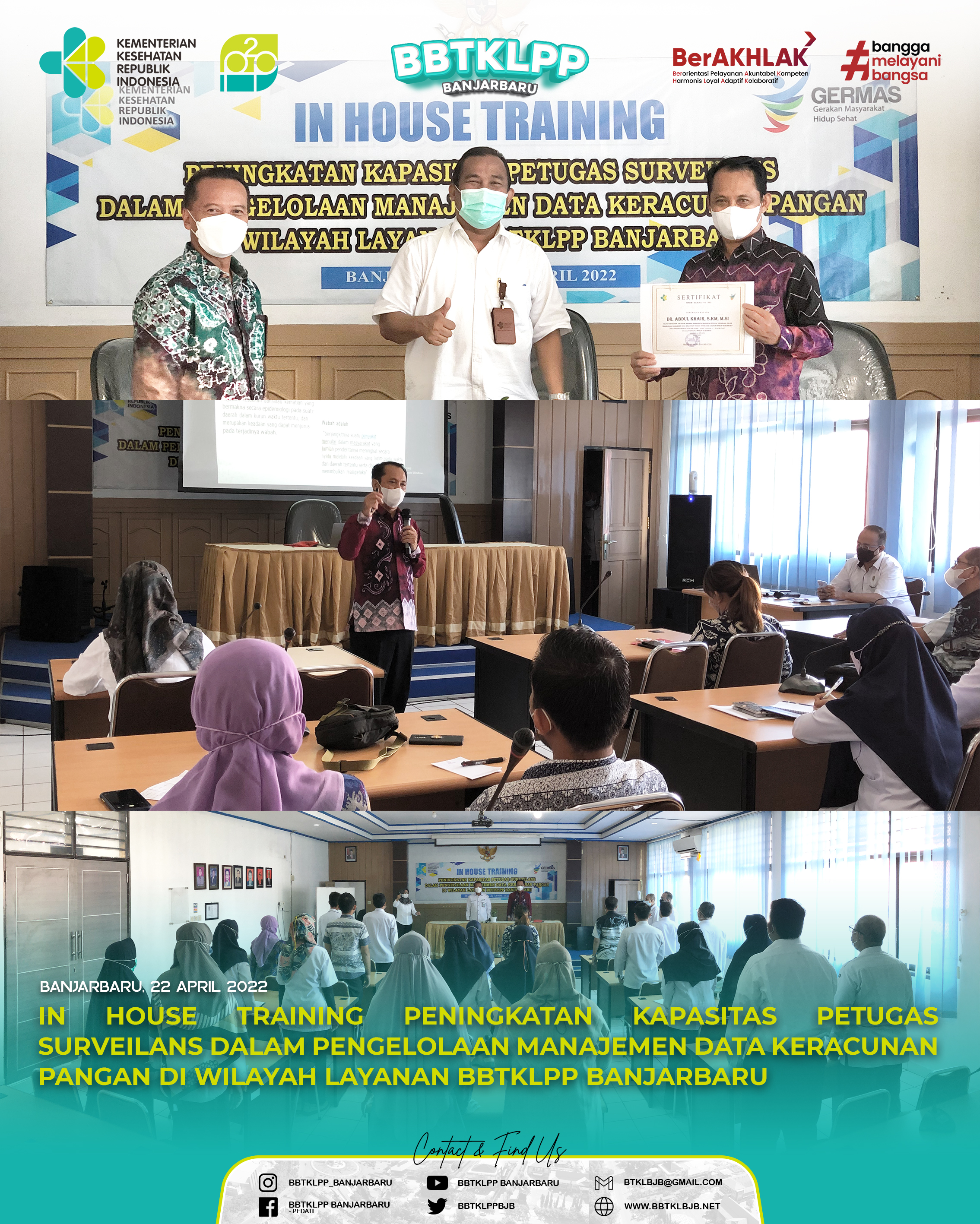 Banjarbaru (22/04), Balai Besar Teknik Kesehatan Lingkungan dan Pengendalian Penyakit Banjarbaru melaksanakan In House Training (IHT) Peningkatan Kapasitas Petugas Surveilans Dalam Pengelolaan Manajemen Dalam Keracunan Pangan di Wilayah Layanan BBTKLPPBACA SELANJUTNYA