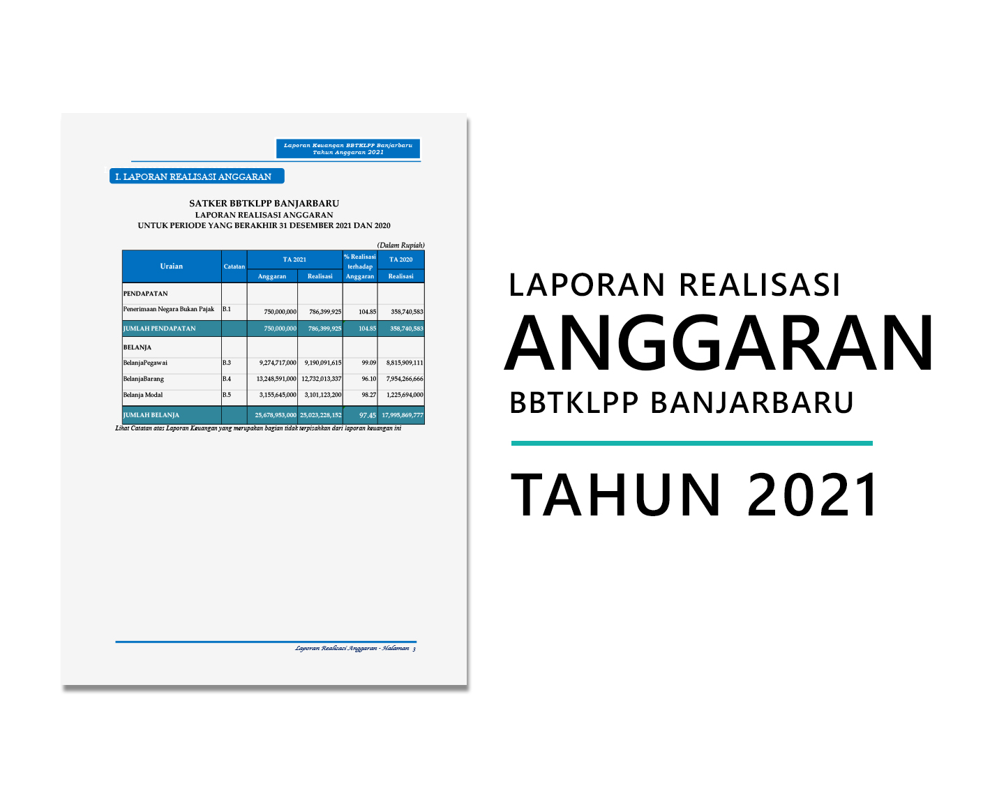 Laporan Realisasi Anggaran BBTKLPP Banjarbaru Tahun 2021