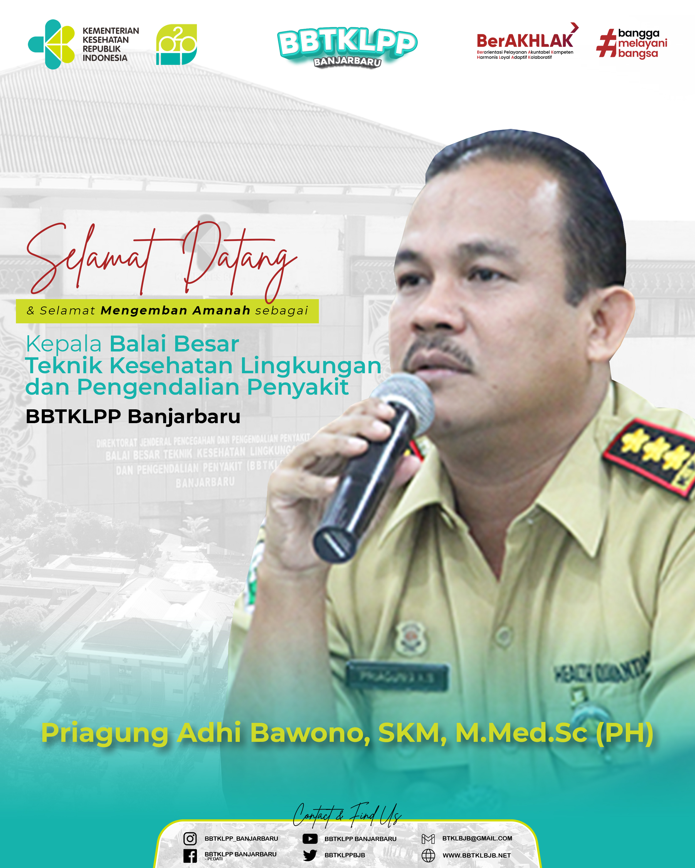 Selamat Datang & Selamat Mengemban Amanah sebagai Kepala Balai Besar Teknik Kesehatan Lingkungan dan Pengendalian Penyakit Banjarbaru PRIAGUNG ADHI BAWONO, SKM.M.Med.Sc(PH)BACA SELANJUTNYA