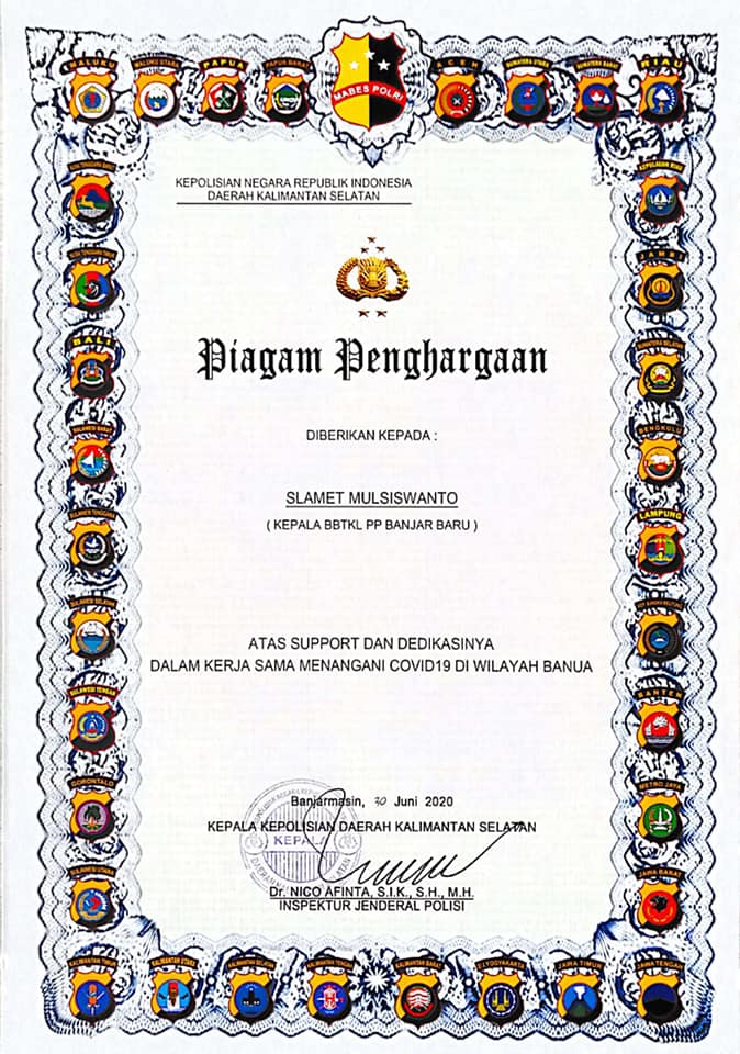 Sebagai bentuk apresiasi lintas sektor dalam usaha penanganan Covid-19, pada tanggal 16 Juli 2020 Bapak Slamet Mulsiswanto (Kepala BBTKLPP Banjarbaru) mendapatkan penghargaan dari Polda Kalsel atas support dan dedikasinya dalamBACA SELANJUTNYA