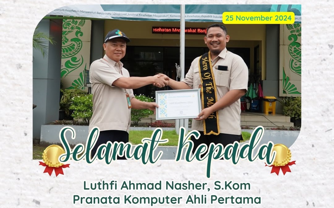 Selamat Kepada Luthfi Ahmad Nasher, S.Kom (Pranata Komputer Ahli Pertama) sebagai Hero of the Month Periode Triwulan III 2024. Tetap Semangat dan Terus memberikan yang terbaik untuk Labkesmas Banjarbaru @BACA SELANJUTNYA